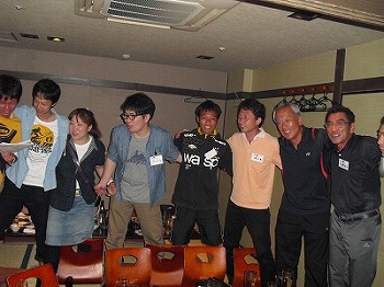 1期の山手さんから36期の現役まで、いろいろな年代のOBが参加。女性OG5人は、各テーブルからひっぱりだこ。大いに盛り上がっていた。いつの間にか時間が過ぎ、中締めの時間に。全員で肩を組み、応援歌を大熱唱。次回の再会を誓い散会となった。 (潤井 寛)