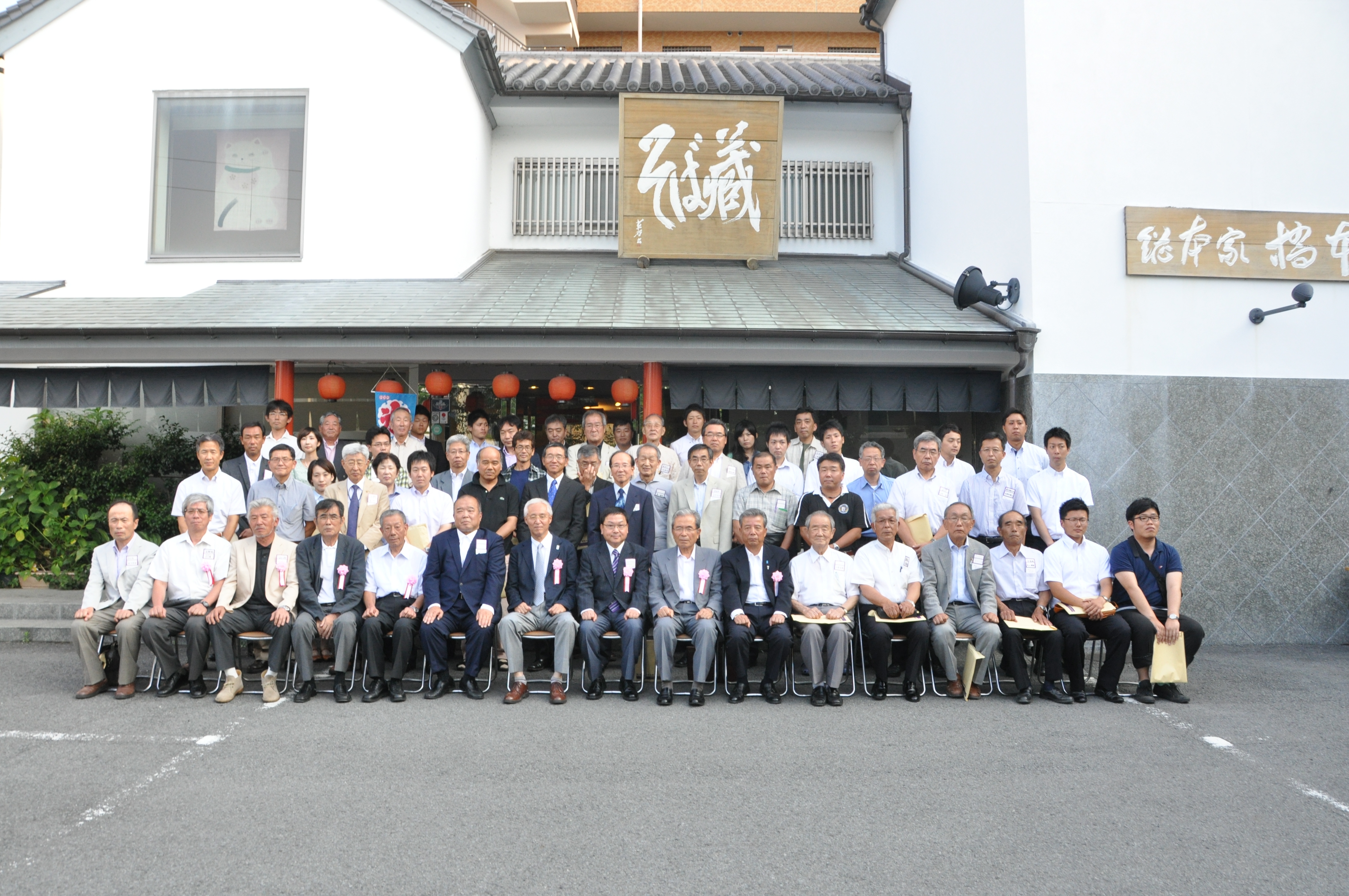 記念撮影、懇親会へと進み、校友会畑事務局長代行の乾杯で開宴、和やかな雰囲気の中で世代を越えて語り合いながら食事を楽しんだ。最後は会場であるそば蔵社長・伊丹氏(57商)のリードで逍遥歌を合唱、万歳三唱で閉宴した。