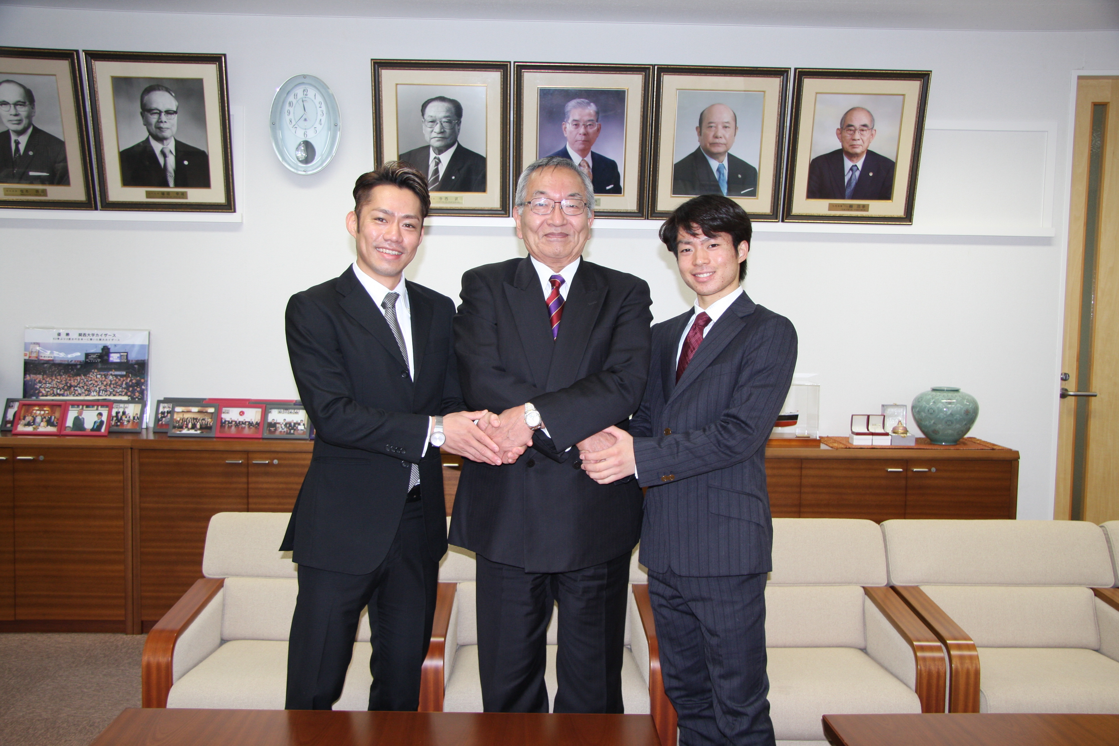 ソチオリンピック応援のお礼に高橋大輔さんと町田樹さんが校友会 寺内会長を