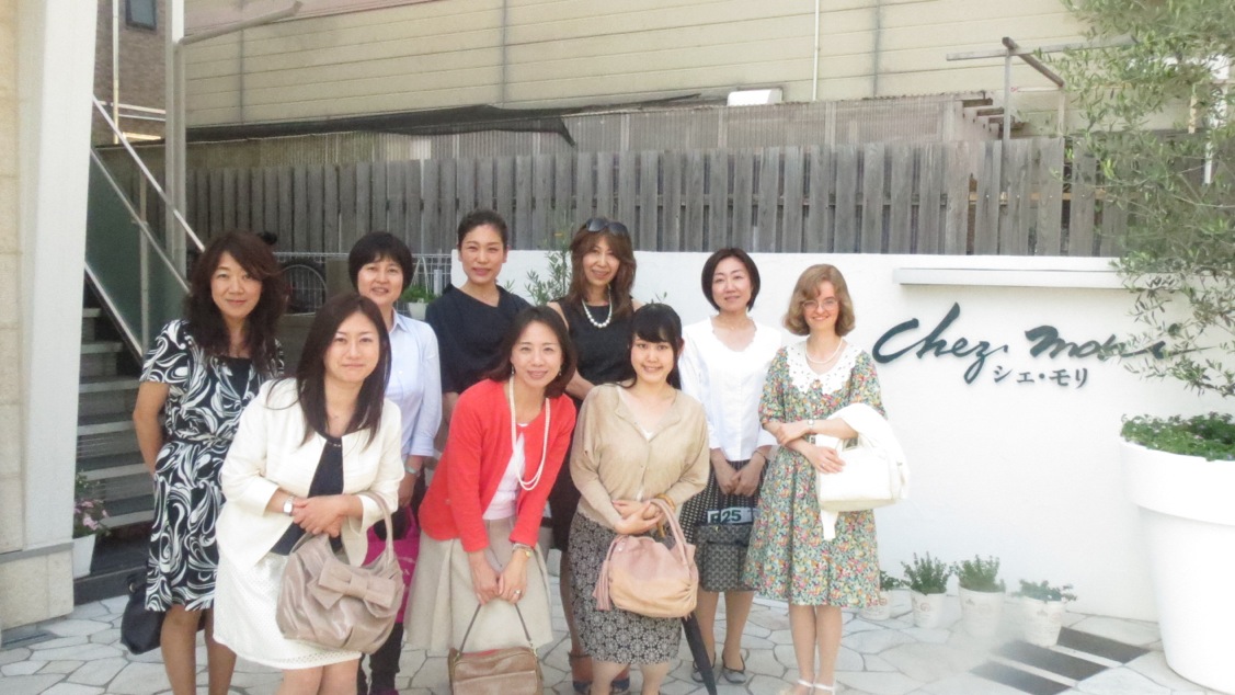さわやかな五月晴れの5月18日(日)、芦屋市内のフランス料理店シェ・モリで第9回芦屋支部女子会を開催しました。2周年を迎え幹事も一巡し、今回から新たに2名が加わり総勢10名に。芦屋市内の会社勤務の内山木綿さん(平11文)と、両親とも米国人で日本で産まれ育ったキャロリン・ヒートンさん(平24文)を迎え、話題も国際的になってきました。