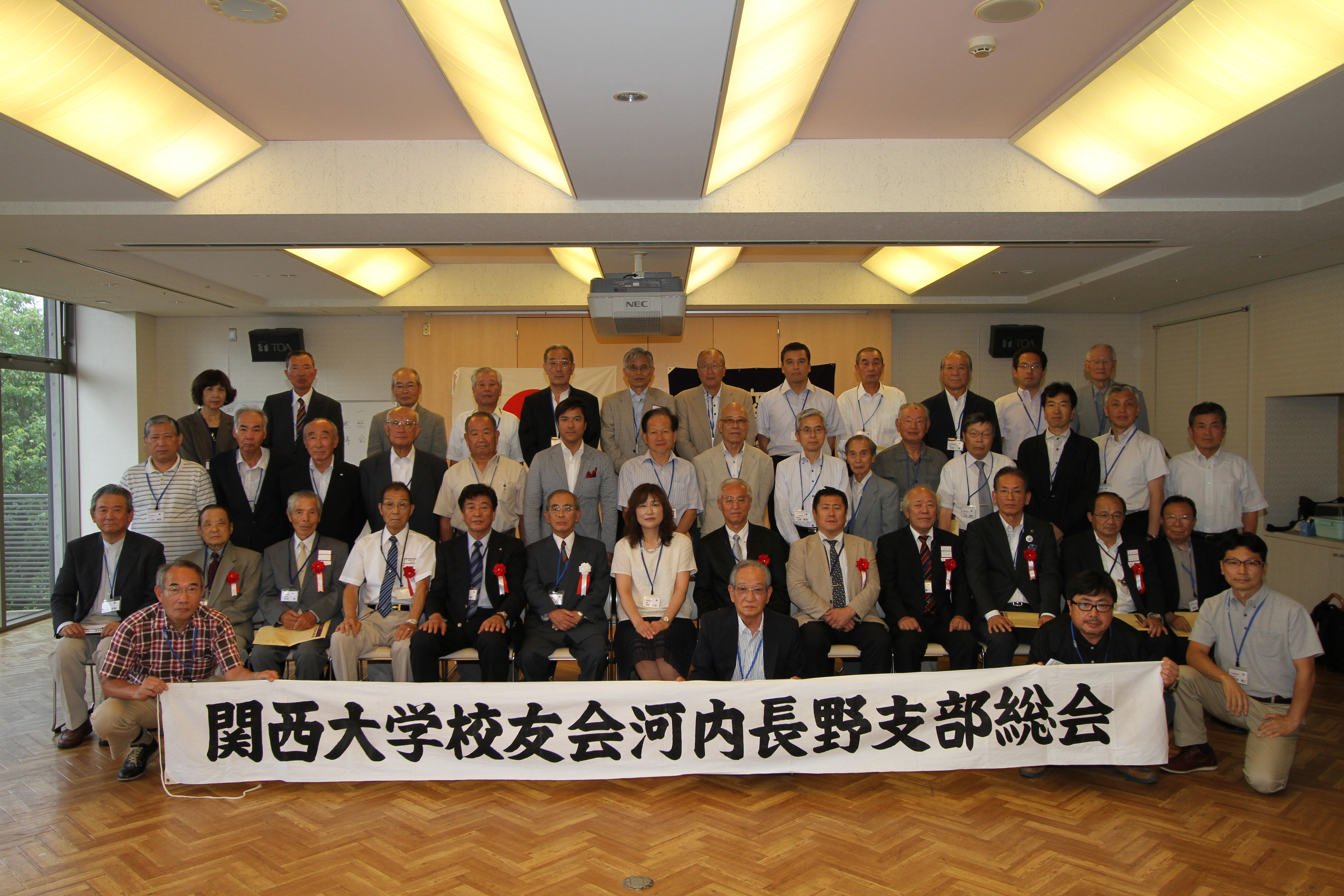 河内長野支部(榎本正人支部長)の平成26年度総会が、7月6日(日)午前11時から河内長野荘で開催された。来賓として、田中義昭校友会副会長はじめ、隣接4支部代表、支部校友の芝田啓治市長を迎え、出席者は50余人を数えた。