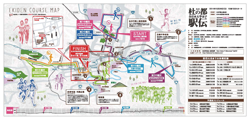スタート:仙台市陸上競技場~フィニッシュ:仙台市役所前市民広場 6区間38.0km
