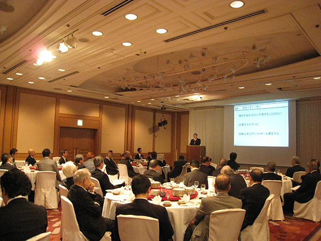 講演内容としては、今までの事業継承の選択肢として、1上場、2後継者への継承、3廃業(清算)に加えて、新しく4第三者への事業継承(M&A)の手法があり、それぞれの手法のメリット・デメリットにつきわかりやすい解説をいただいた。