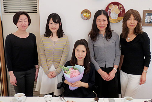 当日は、女子魂を発揮して彼女からいろいろな話を聞き出したりしつつ、彼女の幸せそうな笑顔に、出席者一同もほっこり幸せな気持ちになりました。集まることができなかったメンバ-にも声をかけ、女子会から花束と寄せ書きをプレゼント。こうしてメンバ-の幸を共に祝うことができるのも、女子会の喜びであると実感しました。(平10文 浅尾美佳)