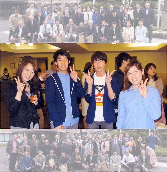 KUESS・OBOG会では、4月2日、満開の桜と好天に恵まれた中、100周年記念会館「レストラン紫紺」で卒業生65人、在学生10人で例会を開催した。