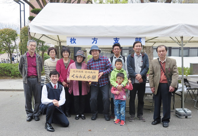同時に、テント内で飲食していただいた方たちには、支部発行の『会報ひらかた』を配布し、広く支部活動を知っていただくことができた。