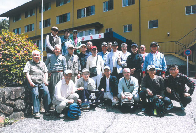 昼食後は軽く休憩をとった後、ウォーキングに出発。「目に青葉、山ホトトギス・初ガツオ」とあるように、青い芽が吹く木々を眺め、ウグイスの声を聞き、田植え間近の農道を歩いた。わずか1時間程度の散策であった。旅館に戻った後は年寄りの楽しみ、温泉入浴。自宅に風呂はあるものの、温泉はまた格別の感あり。露天風呂に入り能勢の山並みを眺望し軽く汗を流した。露天風呂の後は館内で休憩。チェックアウトの時間となり再びバスに乗って、山下駅へ。楽しい1日だった。 (昭45文 臼井宏)