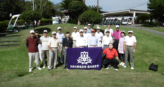 9月27日、快晴の岬カントリー、学歌流れるパター練習グリーンにメンバー全員集合。泉州連合会(吉田常佳会長)第3回ゴルフコンペが開催された。