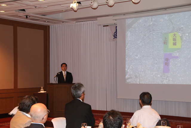 今回は、昭和63年母校の大学院文学研究科博士課程卒業の校友で、阪南大学国際観光学部教授の来村多加史先生を講師にお招きし、「大阪の魅力再発見-大阪観光の核となる上町台地の史跡と風景」と題して講演いただいた。