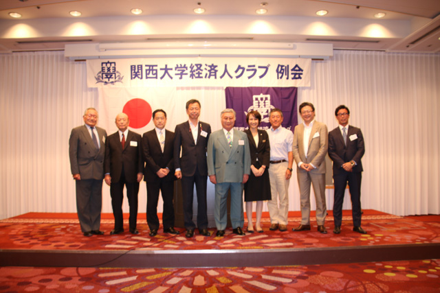 経済人クラブ(栗原照次郎会長)第211回例会が、9月12日に大阪新阪急ホテルで開催され、寺内俊太郎校友会長、上原洋允法人相談役の来賓と、新入会員1人、特別参加者を含め62人が出席した。