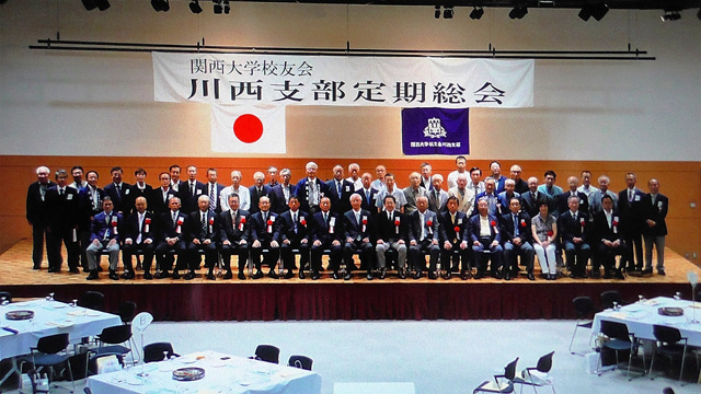 初秋の気配を感じる9月18日、川西支部(井上能一支部長)の28年度総会がアステ市民プラザで盛大に開催され、校友会本部、近隣支部からの来賓、初参加者などを含め総勢73人の校友が集った。
