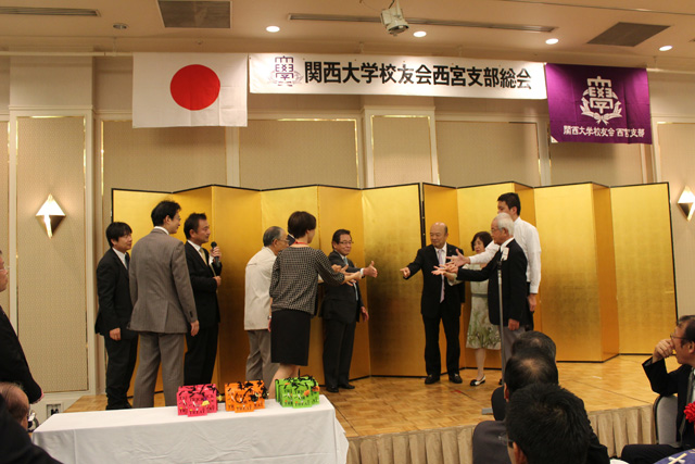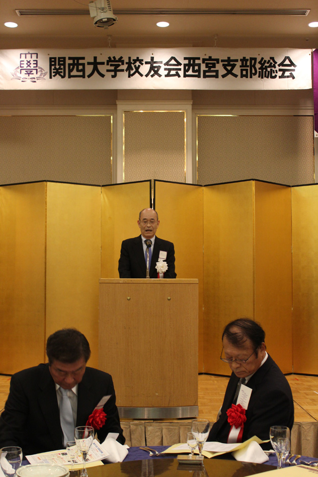 西宮支部(河野昌弘支部長)は、28年度総会を10月1日にノボテル甲子園で開催し、渡邊校友会副会長をはじめ、近隣支部などからも多数の来賓を迎えて、総勢約85人が出席した。