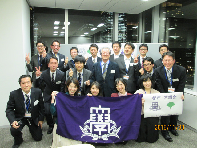 11月30日、関西大学東京センターで東京都庁に勤める関大卒業生18人が集い、都庁紫紺会の親睦会が開催された。
