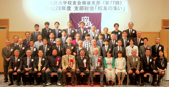 総会議事では、支部活性化対策としてネット上に支部掲示板を作り、校友同士の交流を図る構想に初年度7万円が予算化された。また、市民に無料公開している「まちかど寄席」も継続して開催し、関大のPRと共に備後支部の活性化に貢献できるよう頑張ることが報告された。