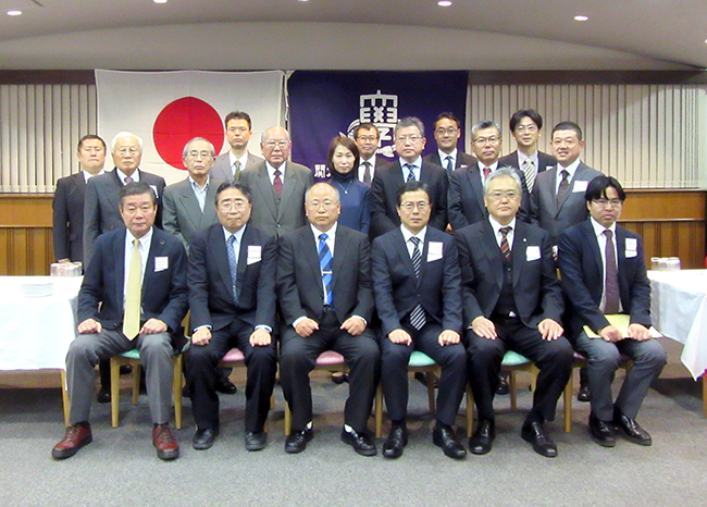 関大不動産鑑定士クラブ(笠井靖彦会長)の第41回定期総会は、11月26日、関西大学100周年記念会館「レストラン紫紺」で、来賓に大学から安部善博常務理事、吉田宗弘副学長、校友会から渡邊泰之副会長らをはじめ、友好団体である田中義久社会保険労務士関大会会長、内田聡公認会計士関大会副会長、辻井宏之司法書士関大会副会長、河嶋達関西大学会計人会幹事長らをお招きして行われた。