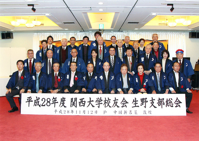 生野支部(西田随善支部長)は、28年度総会を11月12日に道頓堀の新名菜敦煌で開催した。
