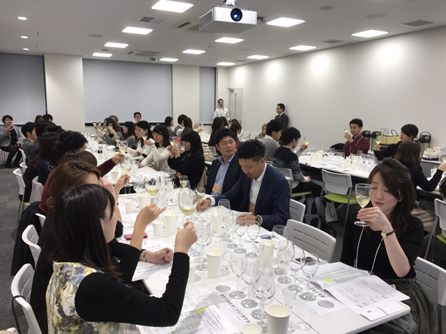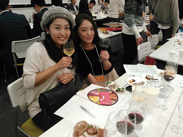 後半のワインセミナーでは、ソムリエを迎え、参加者はワインに関する知識を深めた。多忙ななか、寺内会長にもご参加いただいた。残念ながら、未成年の学生は試飲することはできなかったが、ワインの歴史や分類、そして、明日にでも披露することができるテイスティングの方法・ラベルの見方などを学んだ。20歳以上の参加者は試飲を行い、味の違いを楽しみながらワインを勉強した。中には、顔を真っ赤にしながら懸命に飲み比べを楽しんでいる人もおり、参加者の顔が満足で満たされるセミナーとなった。