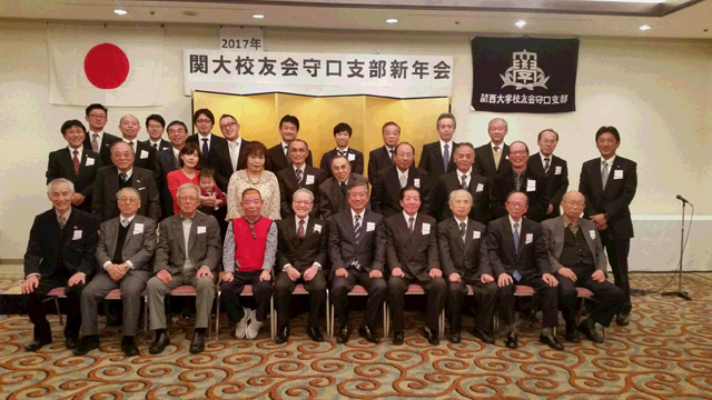 学歌斉唱でスタートし、川部支部長、校友市議の澤井議長、西端市長から「関西大学は創立130周年、守口市は市制施行70周年を終え、お互いが将来に向けて発展していこう」等との挨拶があった。