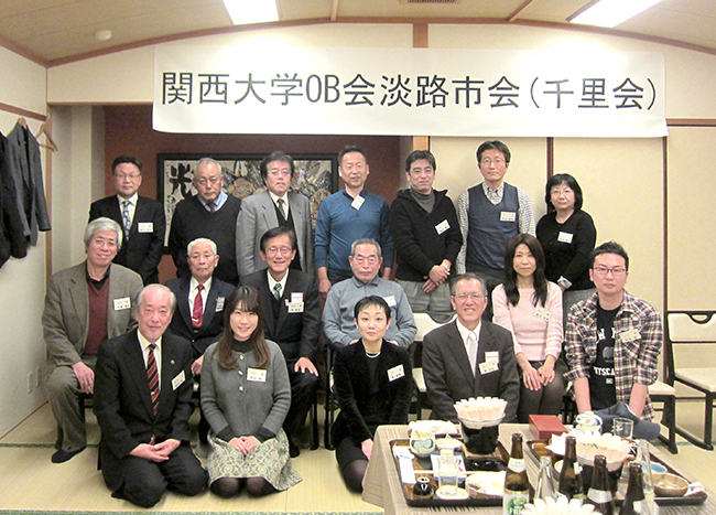 淡路市在住校友を中心とする淡路支部・淡路市会(千里会)が、2月11日に淡路市の北淡震災記念公園レストラン「さくら」で、来賓に細田聰淡路支部長、佐渡達史幹事長を迎えて4年ぶりに開催された。