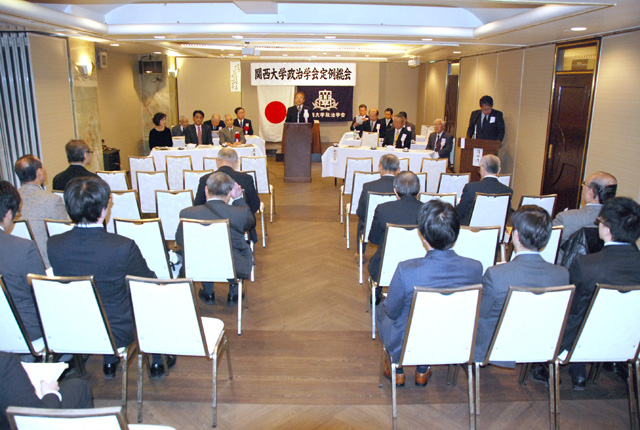 関西大学政治学会(吉田之計会長)第33回総会が、2月25日に大阪市「徐園」で会員33人の参加を得て開催された。