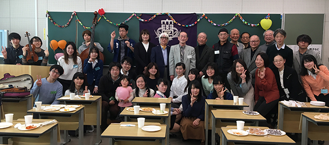 交響楽団OBOG会では、4月2日の校友会ホームカミングデーに参加、好天初桜の美しい千里山キャンバスを眺めながらの教室で、40人の楽しい親睦会を開催した。