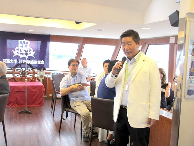 新体制のもと、7月8日に快晴の中、芦屋支部と合同で神戸港クルージングパーティを開催した。おいしいパーティ料理と豊富な飲み物が用意され、初対面の方もいたが、関大出身という縁で仲よく交流できた。