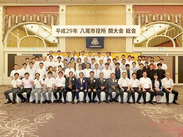 八尾市役所関大会(渡辺孝司会長)総会が、7月14日にシェラトン都ホテルで開催され、八尾支部では中尾達夫支部長がお招きにより出席した。