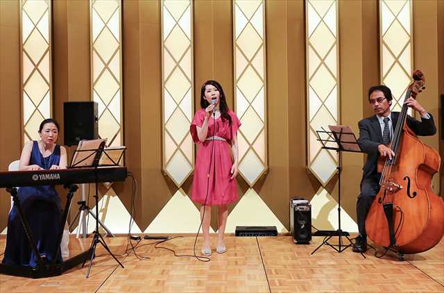 引き続き行われた懇親会は、「五十嵐あきこジャズライブ」と銘打ったミニ演奏会を初めて企画した。吹田市で少女時代を過ごし、現在、高松市在住の五十嵐校友がジャズのスタンダード曲「Take the A Train(A列車で行こう)」など6曲を披露。会場では伸びやかな歌声を堪能しながら、思い思いに歓談を楽しんだり、初参加校友のスピーチに聞き入ったりし、母校との絆を確かめ合った。
