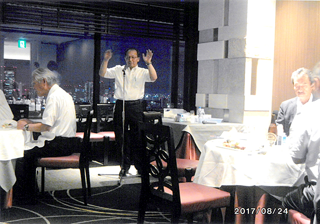 年輪関大会(朝倉満会長)では、第17回例会を8月24日にグランド白楽天(梅田)で17人が出席して開催した。