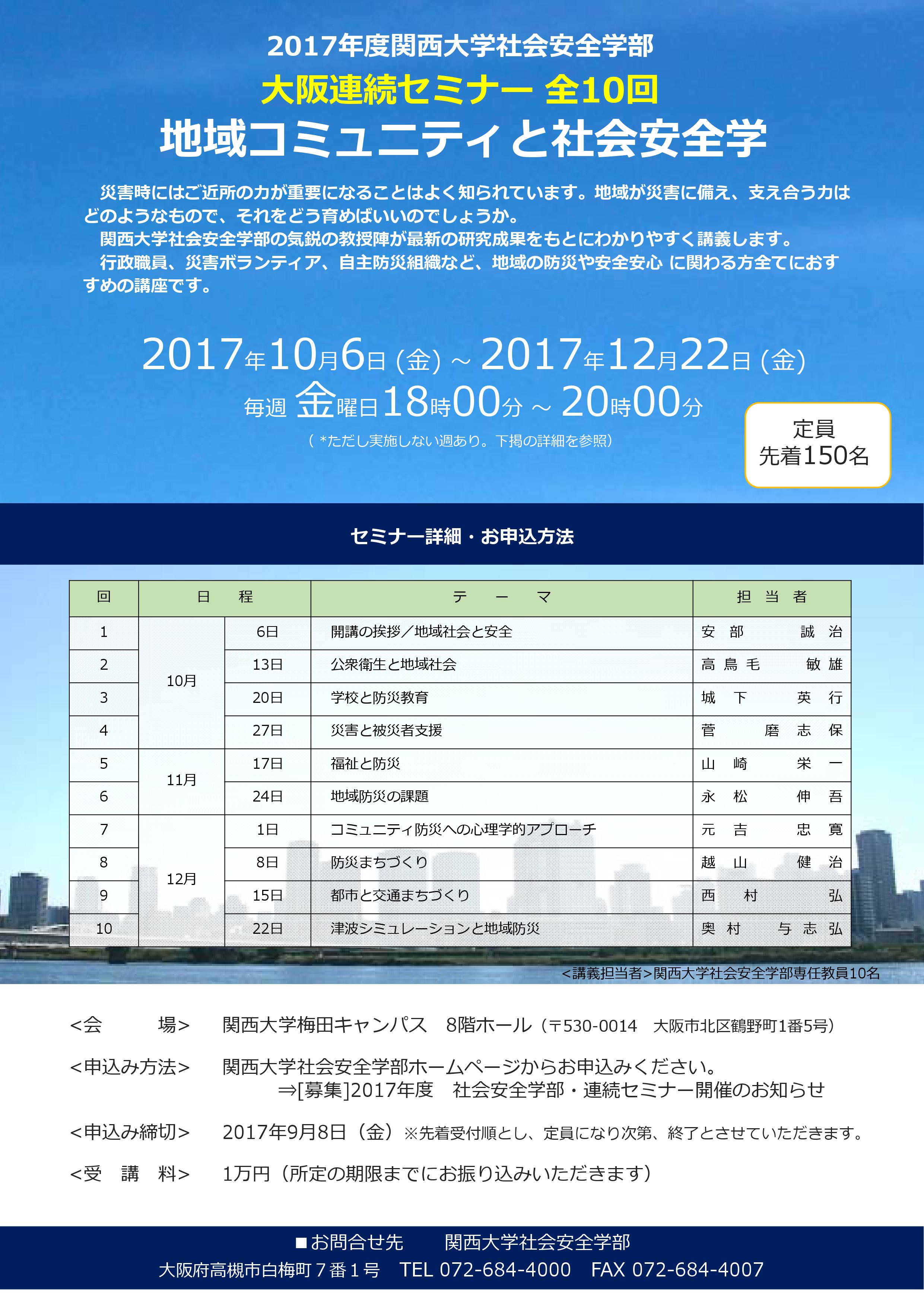 「【募集】2017年度 社会安全学部・連続セミナー開催(大阪)のお知らせ」