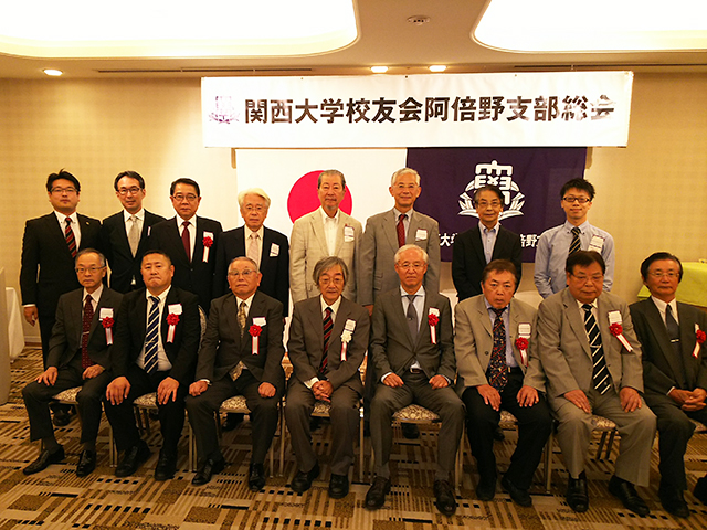 阿倍野支部事業報告等全議案を承認 一言スピーチ交えて歓談 2017年09月24日 阿倍野支部(九之池榮一支部長)の29年度総会が、9月24日に来賓を含め16人が出席して天王寺都ホテルで開催された。 第1部総会は、黙祷、学歌斉唱の後、九之池支部長の挨拶があり、議事では事業報告・会計報告ほか全議案が承認された。 記念撮影に続いて第2部懇親会に移った。田中校友会副会長、伊藤市内支部連合会副会長から挨拶があり、開宴。参加会員の一言スピーチなどを交えて歓談し、最期は逍遙歌合唱で閉会となった。 (大長ハウス・松峯哲也=06-6628-0171)