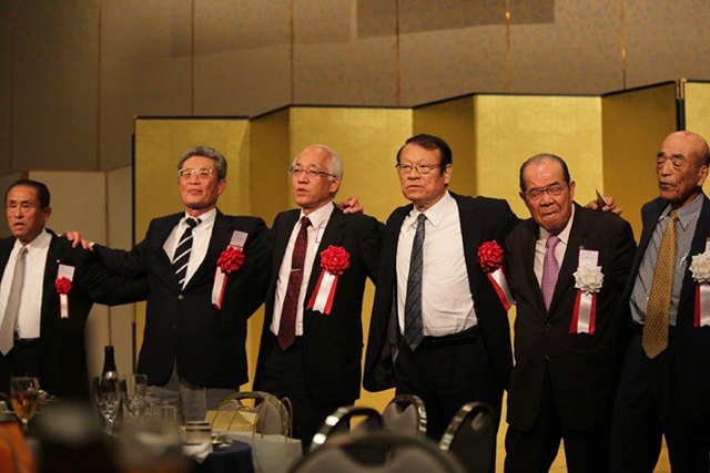 宴もたけなわには、応援団による勇壮な演舞演奏が披露され、かつての学生生活に思いを馳せるとともに母校の益々の発展を祈った。