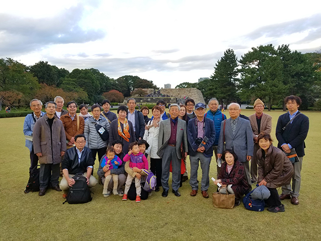 東京支部(堺精一支部長)では、本年度で3回目となる『秋の江戸城の史跡巡り...「古代の造形に触れ合う」』と銘打ち、校友で宮内庁書陵部陵墓調査官(博士)である徳田誠志さん(平1D文)の案内で、11月11日土曜日に『秋の皇居散策懇親会』を実施した。神奈川支部・千葉支部からも参加いただき、32人が参集した。