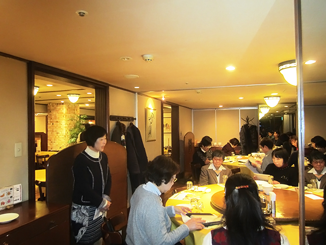 その後、広東料理のランチコースを頂きながら、幹事それぞれが新年にふさわしい、抱負や報告などを、ある人は真面目に!またある人はユーモアたっぷり!に述べ、和やかに賑やかに過ごしました。この冬の厳しい寒さの中でしたが、会場は活気に満ち、また、さまざまなメッセージで穏やかで温かな空気がながれ、新年にふさわしい会となりました。