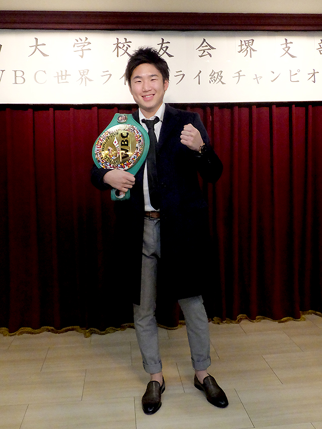 拳四朗選手は、昨年5月20日、有明コロシアムでWBC世界ライトフライ級王者ガニガン・オペス(メキシコ)と対戦し、判定勝ちを収めて、プロ10戦目にして無敗のまま悲願の王座獲得に成功した。10月22日には世界ライトフライ級1位のペドロ・ゲバラと対戦し初防衛に成功、12月30日にはWBC世界ライトフライ級11位のヒルベルト・ペドソラ(パナマ)と対戦し、2度目の防衛戦に成功している。