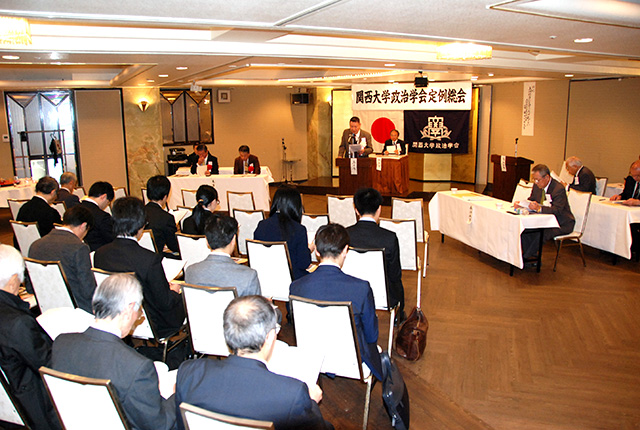 関西大学政治学会(吉田之計会長)第34回総会が2月17日、大阪「徐園」で会員38人の参加を得て開催された。