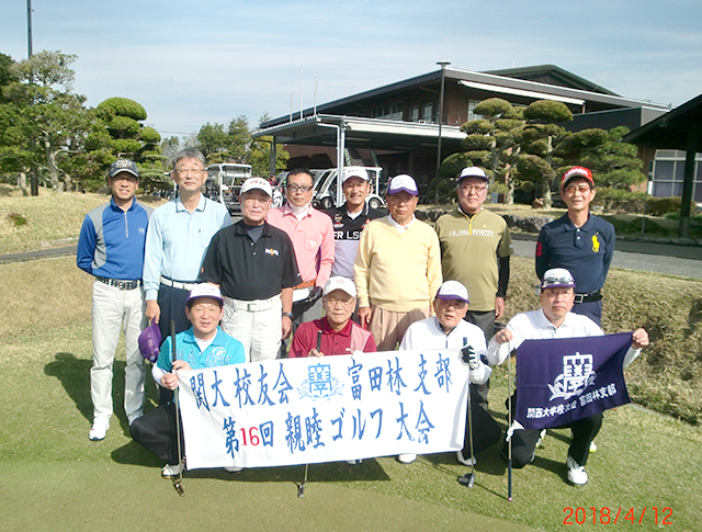 富田林支部筒井孝一氏が念願の初優勝飾る 12人参加し第16回ゴルフ大会 2018年04月12日 富田林支部(杉本孝支部長)では、4月12日、第16回親睦ゴルフ大会を「よしのカントリークラブ」で開催した。 当日は、天候にも恵まれ、名物の桜もまだ残る中、12人が参加して日頃の腕を競った。 成績結果は、熱戦の中、筒井孝一氏が本大会8年、16回目で初優勝。準優勝は土井啓司氏だった。「きびしいHCなので思いもよらぬ出来事、自分でも驚いている。でも、はじめての優勝だけに嬉しい」と優勝の弁。 次回は、10月に地元「聖丘カントリー倶楽部」で開催予定。 (筒井孝一) (秦純一=0721-93-3085)