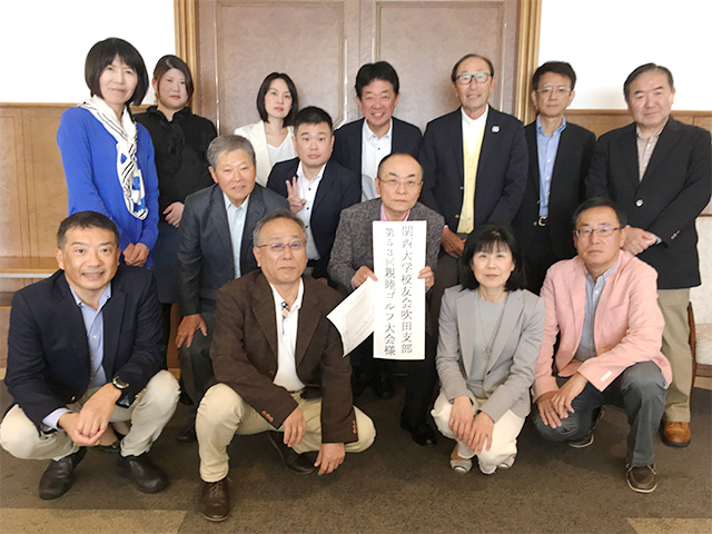 当日は、皆さんの日ごろの行いを表すかのように、ホールアウト後は、晴天に恵まれました。冗談はさておき、ラウンド中もほとんど雨に降られることもなく、4組14人の校友と賛助会員が和気藹々とゴルフを楽しみました。
