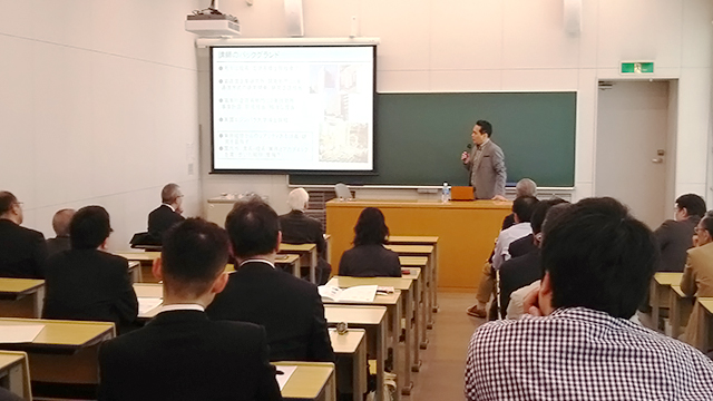 今年は、商学部の西岡健一教授をお招きし、「社会保険に関わるビジネスイノベーションの現状と未来」というテーマでご講演いただきました。