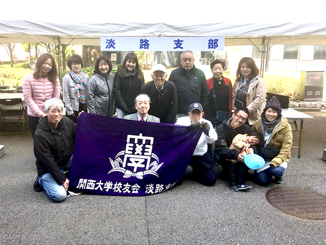 淡路支部淡路島の玉ねぎ等名産を販売 マイクロバスで春フェス参加 2018年04月25日 淡路支部(細田總支部長)では、4月8日、マイクロバスをチャーターし細田支部長、佐渡幹事長以下総勢16人がスプリングフェスティバルに参加しました。 支部は、テントブースにおいて玉ねぎやしいたけ等淡路島名産の物資販売や淡路島のPRを行いました。 当日は、桜も散り、肌寒い中でしたが、応援団の演武等で高いモチベーションでの活動で、あっという間に一日が過ぎました。 校友の皆様、淡路島にお越しの折は是非淡路支部にお声かけください。 (副幹事長 音田誠二 (株)大地代表取締役=0799-62-0055)