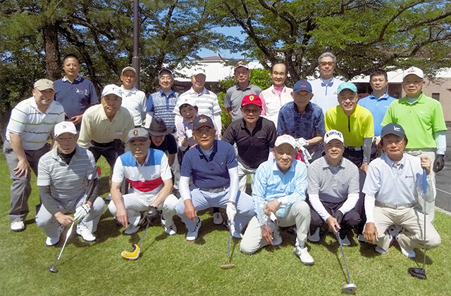 スコアが悪くても何の言い訳もできない快晴に恵まれ、住吉支部から8人、堺支部5人、大阪中央、天王寺、平野、福島、西淀川、高槻島本、生駒、遠くは篠山の各支部選りすぐりのメンバー22人が集合、楽しくプレーした。