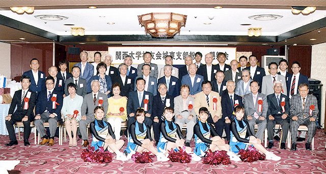 総会に引き続き開催した懇親会では、全員で応援団OB浜田氏の指揮により学歌を斉唱した後、近藤支部長の楽しい挨拶を経て、来賓を代表して校友会副会長田中義信氏にご挨拶をいただきました。大阪市内支部連合会副会長の伊藤充晃氏に乾杯のご発声をいただき、和気あいあいの大宴会のはじまりとなりました。