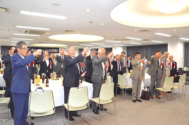 7月14日に東大阪支部(松葉健一支部長)設立50周年記念総会を、U・コミュニティホテル別館U・コミュニティホールで開催し、猛暑の中、100人の校友が参集した。