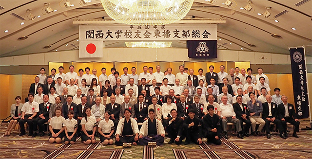 東播支部113人集い創立35周年祝う 記念して支部旗と幟を新調 2018年09月13日 9月13日に加古川プラザホテルで、平成30年度東播支部(角谷賢造支部長)定期総会を開催しました。来賓を含め113人の参加をいただき、盛会のうちに終わることができました。 今年度は、当支部創立35周年にあたり支部名入りの校旗、幟を新調しました。 (会計 東保弘一 58学工) (猪子真一=090-2194-5186)