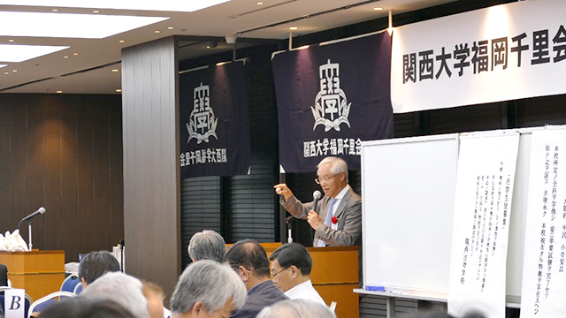 今回の総会では、校友会本部の田中義昭副会長による特別講演会がありました。『旧制関西大学を紐解く』という壮大なテーマで、関大の歴史を熱くお話していただきました。