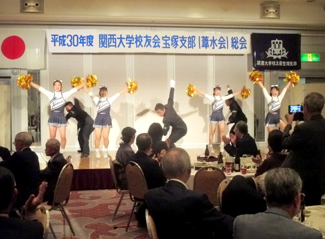 懇親会では、特別出演の応援団リーダー部とチアリーディング部による、熱のこもった演舞の数々に会場は大変盛り上がりました。