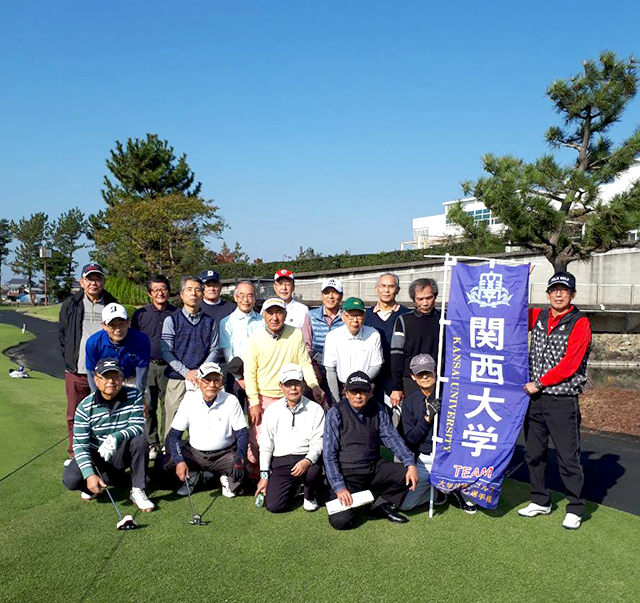 当日は、日頃の行いが善い(?)幹事の祈りが通じたのか、好天に恵まれて選手たちの好プレーが続出した。今回の組合せは、卒業年度別にしたので、同年代の同伴者同士が関大時代のエピソードや最近の趣味、将来の夢(老後の?)などを語り合う姿も見受けられた。