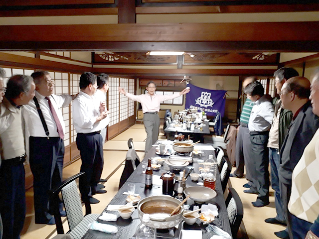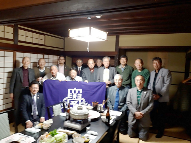 篠山支部地元名物のぼたん鍋囲み忘年会 小嗣氏のハーモニカ演奏楽しむ 2018年12月04日 篠山支部(中瀬和夫支部長)では、12月4日に忘年会を今年も市内「玉川楼」で開催しました。 参加者16人で、恒例の小嗣賢治校友によるハーモニカ演奏があり、丹波篠山名物の「ぼたん鍋」を囲んで大いに盛り上がりました!! (松本嘉久男) (松本嘉久男=079-556-2851)