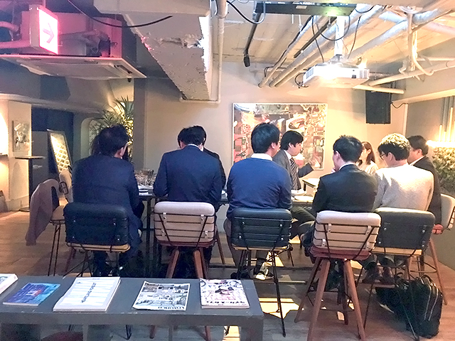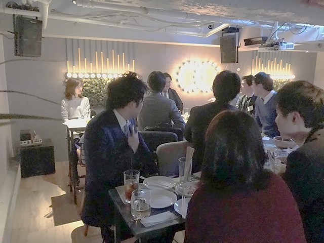 今回は、過去複数回参加の会員と新規参加者を交えた、活気あふれる若手15人が集い開催された。自己紹介を一人一人行い、携わる仕事の内容や趣味にまつわる話、時には参加者から質問があるなど、相互の理解を深められる内容となった。