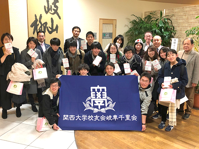 岐阜千里会(松村公夫会長)は、全日本学生落語選手権・策伝大賞にエントリーの学生とサポートの学生16人を招き、選手権での健闘を祈念して激励会を開催しました。